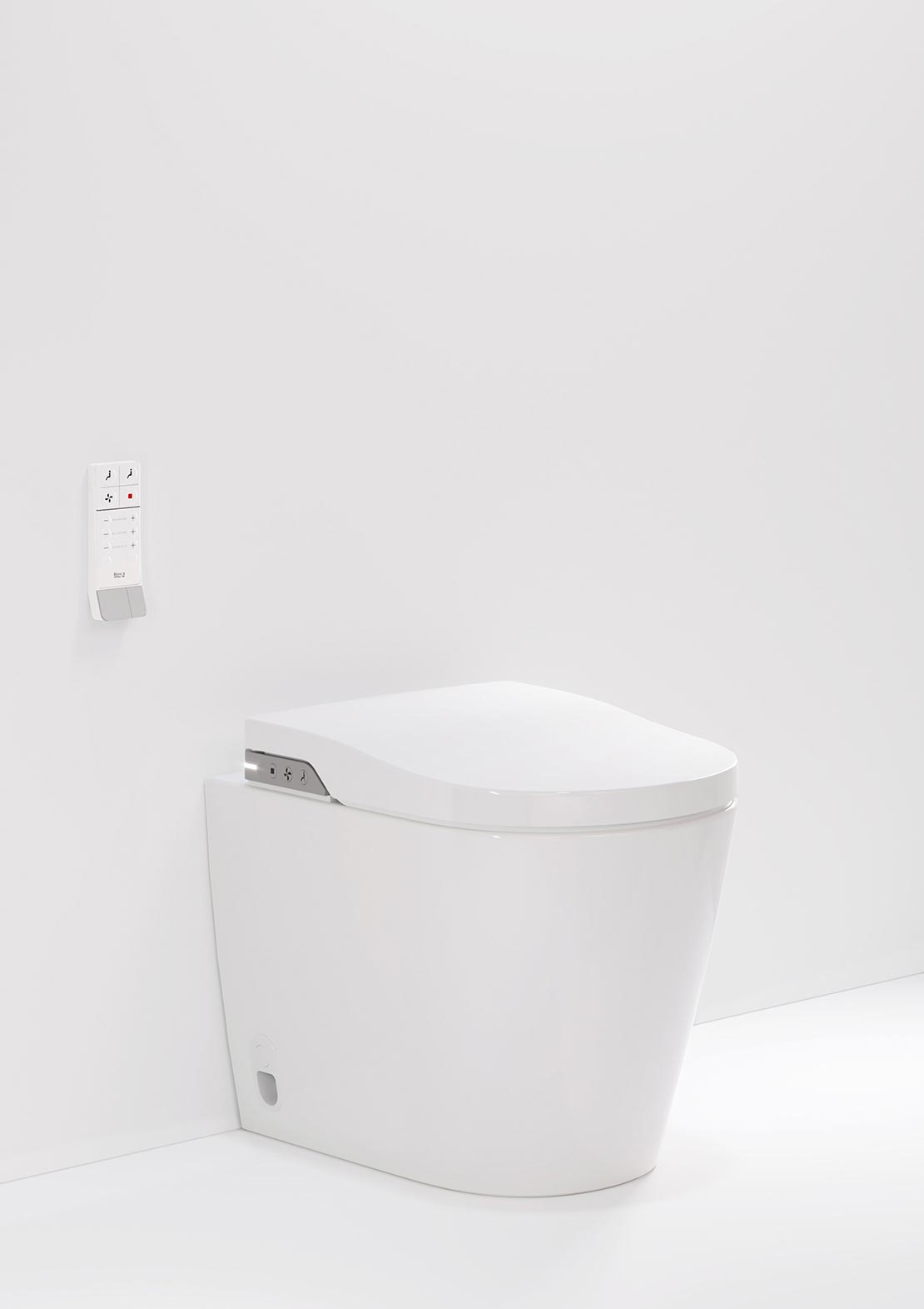 Assim como as outras bacias inteligentes da Roca, o comando à distância e o painel lateral são simples e intuitivos e permitem regular a temperatura da água e do ar, bem como a posição do jato. Como novidade, a bacia com descarga integrada incorpora dois acionamentos para decidir entre a descarga total (6 litros) ou parcial (3 litros) e obter maior economia de água. Outra característica deste Smart Toilet é que em caso de falta de energia, o sistema garante até duas descargas completas fechando o botão lateral.