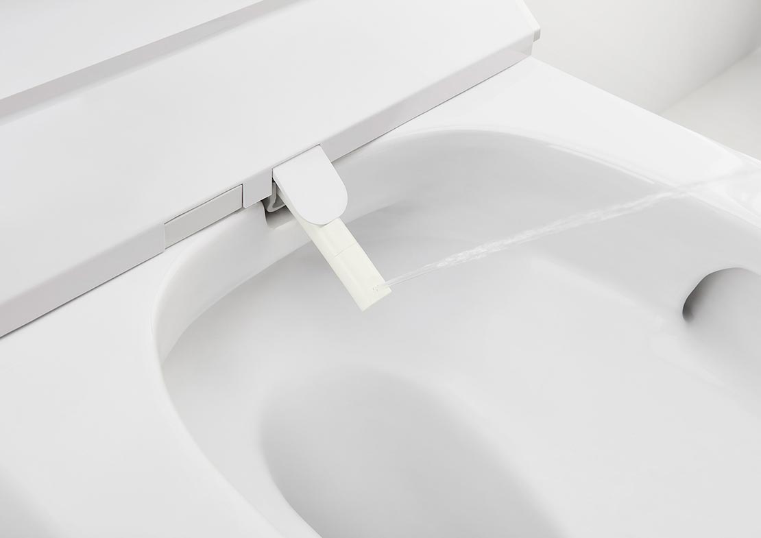 Além da tecnologia de ponta e design do In-Tank®, há também a higiene de ponta do In-Wash®. A bacia que integra as opções de bidês para uma higiene pessoal descomplicada. O jato autolimpante da In-Wash® é regulado para fornecer água às partes mais delicadas graças à sua massagem oscilante e também permite uma secagem suave com ar. Para garantir sua total desinfecção, o jato retrátil é autolimpante (é limpo antes e depois de cada uso) e está equipado com um bico removível que é facilmente retirado para uma limpeza mais completa.