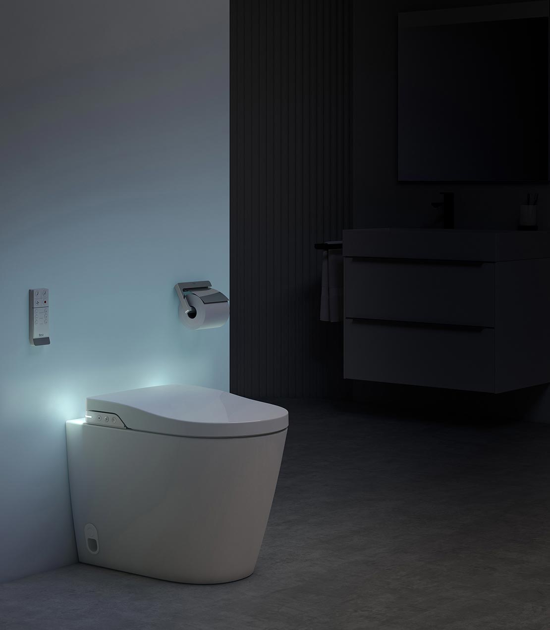 A In-Wash® com In-Tank® apresenta uma conveniente luz noturna de LED que pode ser configurada para até quatro modos diferentes: desligado, em uso, modo noturno e uma combinação de uso e noturno.