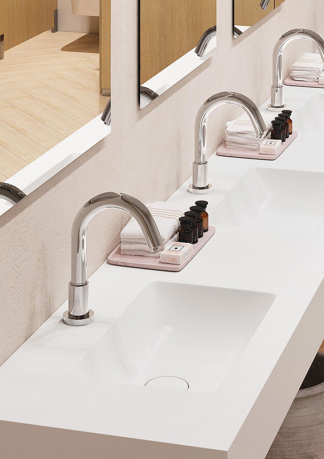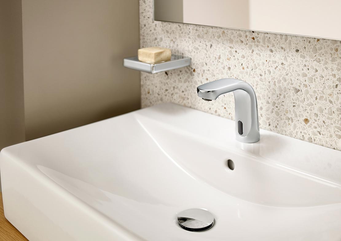 As torneiras eletrônicas da Roca são equipadas com um sensor infravermelho que ativa o fluxo de água quando uma presença é detectada. Uma tecnologia que minimiza o contato direto com a torneira, impedindo a transmissão de microrganismos e maximizando a higiene em nossa casa.